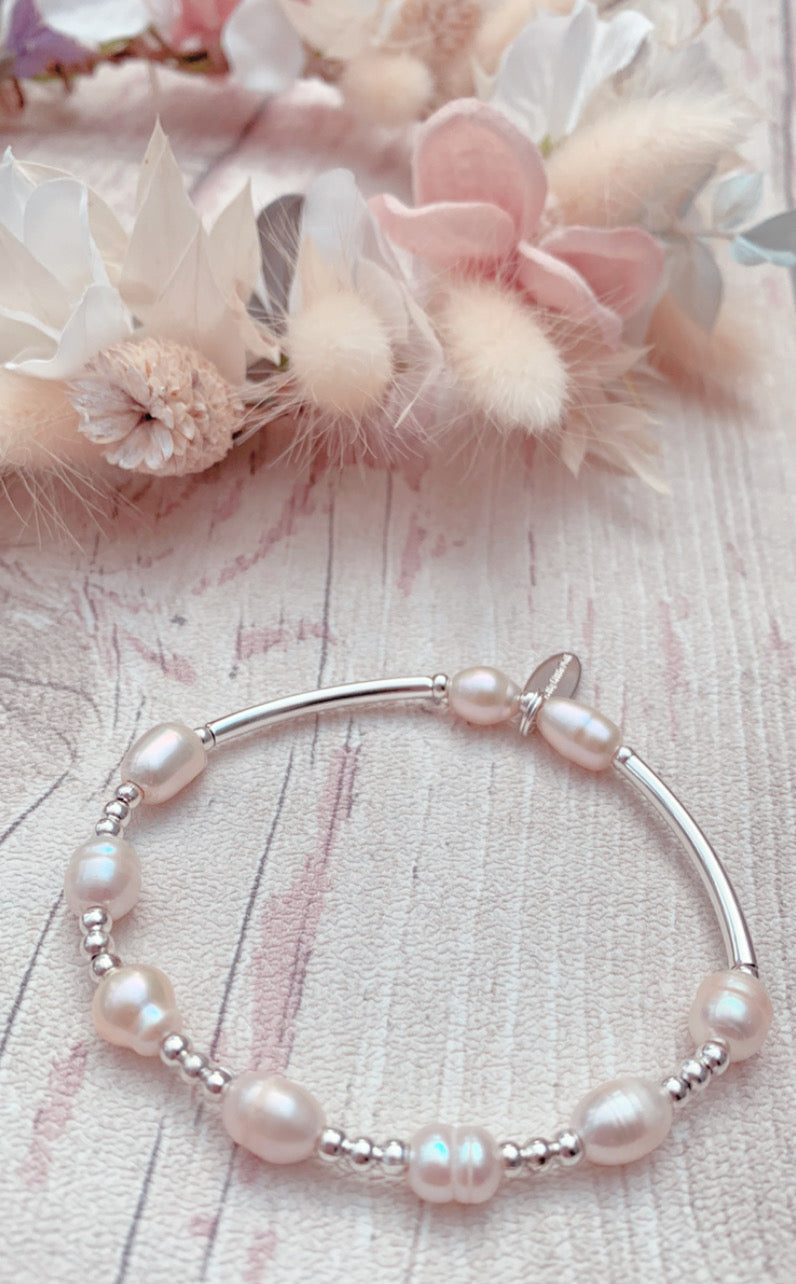 Stunning Freshwater Pearl Noodle Bangle, mixed with round beads - Silver Plated.